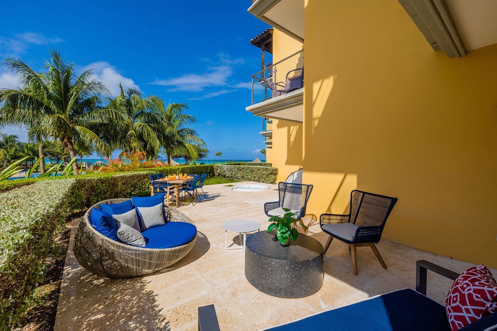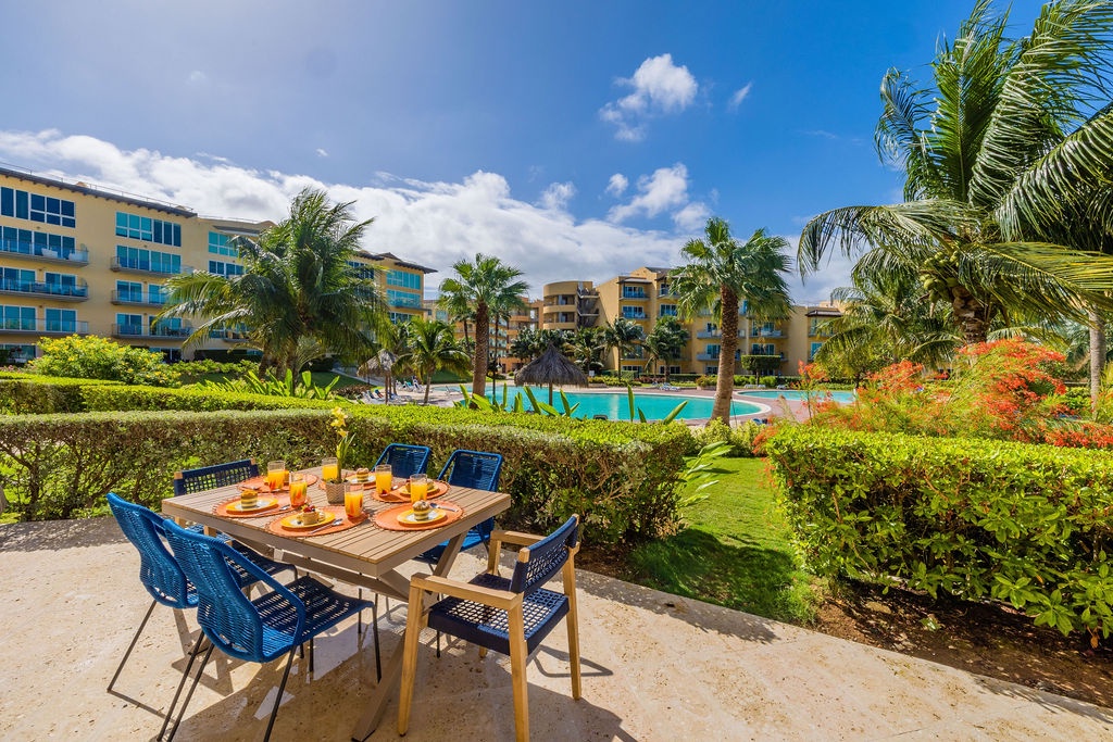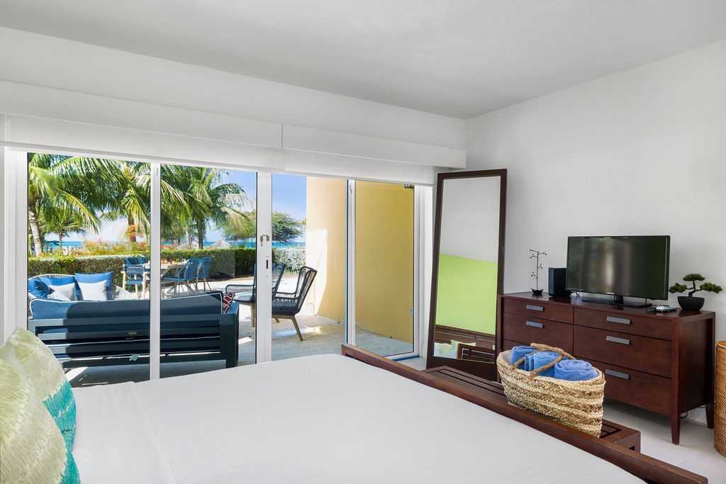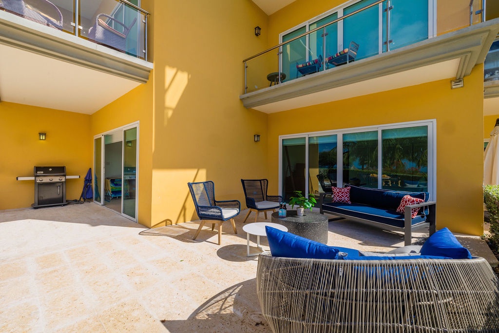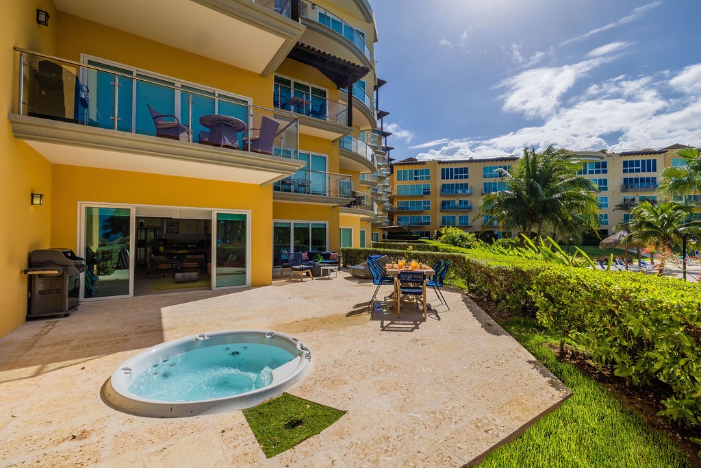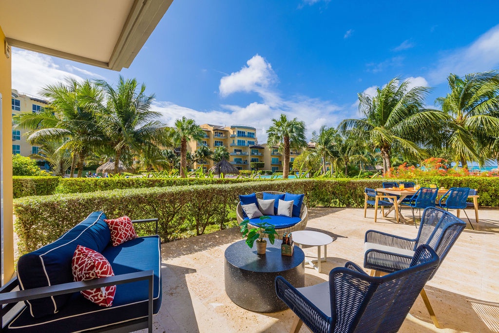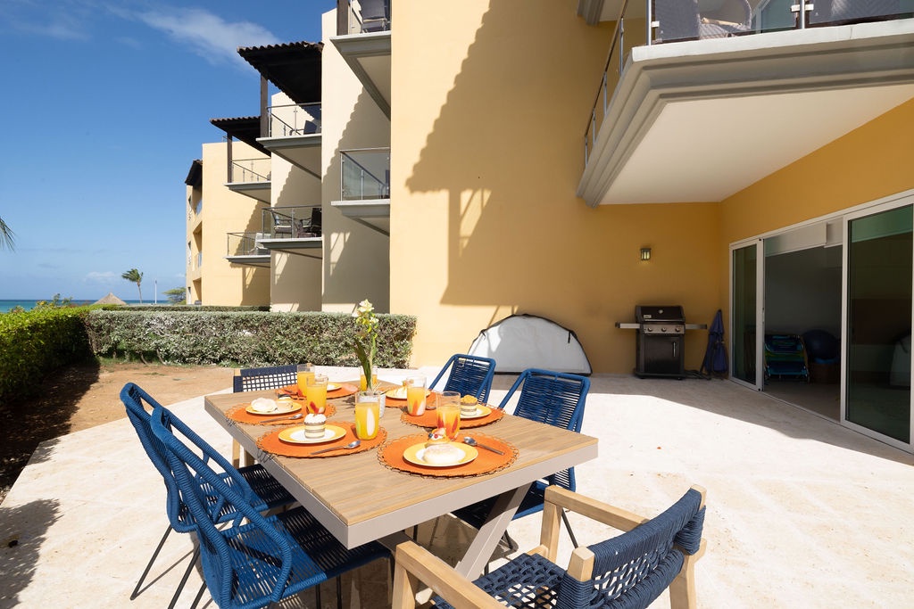This property is colorfully decorated, ideal for a happy Aruba Vacation. Located on the ground floor it has an amazing terrace with sitting area, grill and jacuzzi at Oceania Residences.